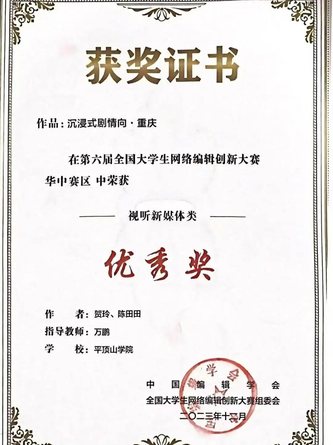 2016级网络与新媒体专业员工何子豪获第七届铁塔记者节新闻采写大赛一等奖。