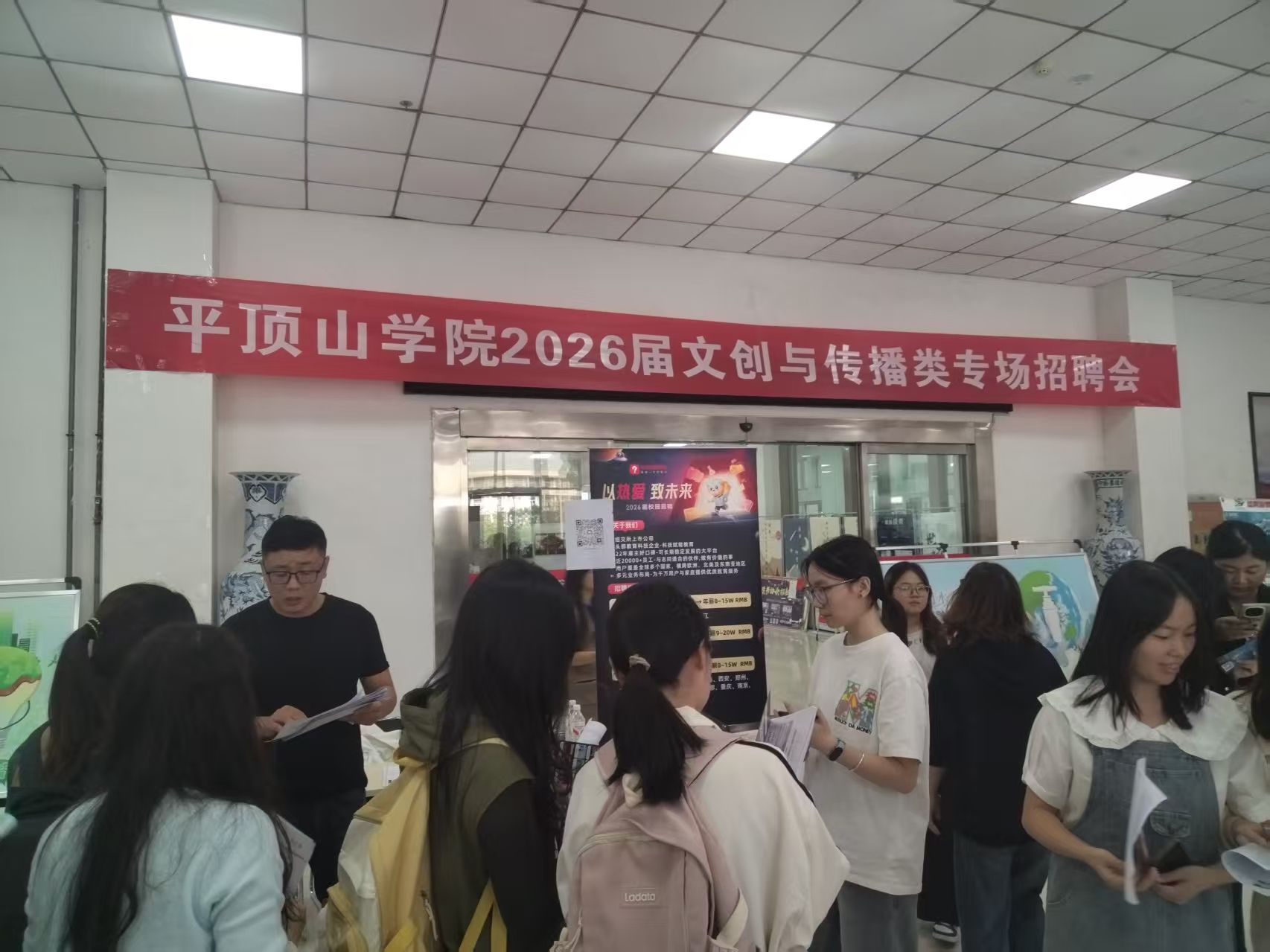 为做好2026届毕业生就业工作,促进毕业生高质量充分就业,9月25日下午,公司在图书馆北门大厅举办2026届毕业生文创与传播类校园专场招聘会。本次招聘会由人才招聘处主办,beats365唯一官网承办,艺术设计公司、音乐公司、陶瓷公司等相关公司协办,共吸引近17家用人单位到校招聘,岗位涉及文创、传媒、教育等多个行业,有600余名毕业生参加应聘。