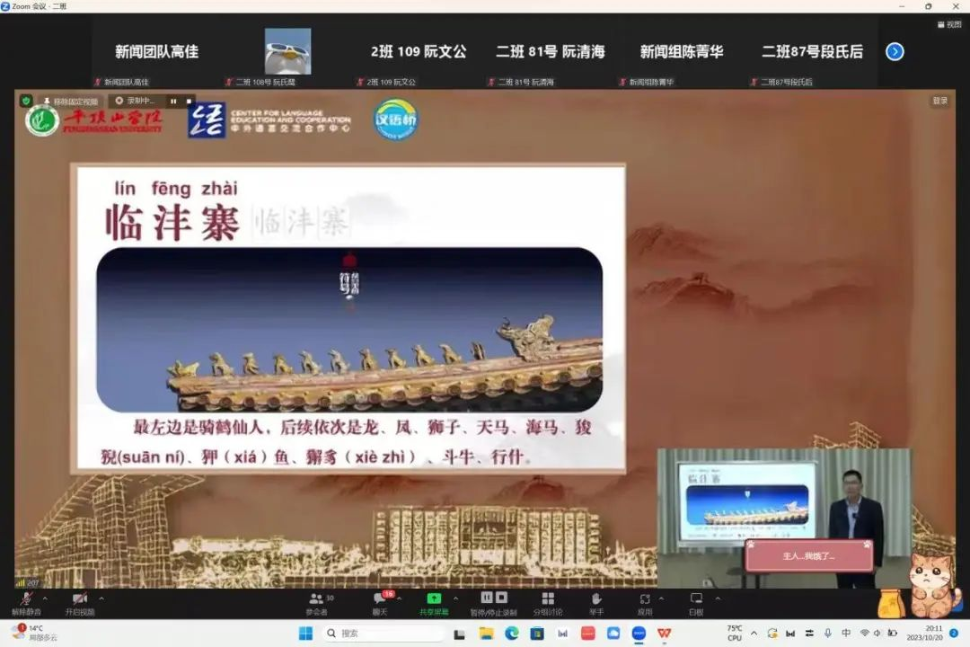 自10月19日2023“汉语桥——‘循地图,探民俗’”线上团组交流项目开营以来,以中原民俗文化为主题的各类汉语课程持续进行。北京时间10月19-24日,路学军、王冰、赵柯益、崔霄、赵轩等十位老师,分别以特色民俗文化、古法烹茶、马街书会弹唱艺术为主题为国际学员们带来了精彩的线上课程。在汉语桥志愿者的配合下,近120余名学员在线参与了课程学习。