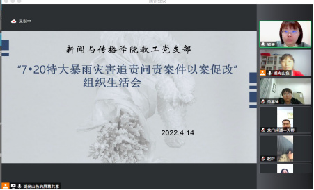 为扎实抓好疫情防控工作,2022年4月14日,beats365唯一官网教工党支部开展“慎终如始,抓好疫情防控”主题党日活动暨“郑州7·20特大暴雨追责问责以案促改”组织生活会。教工第一党支部书记张玉华同志、教工第二党支部书记郑来同志分别就不同议题带领大家进行学习,全体党员教职工参加了此次活动。受疫情的影响,本次党日活动通过腾讯会议平台在线上展开,全体党员在线参加会议。