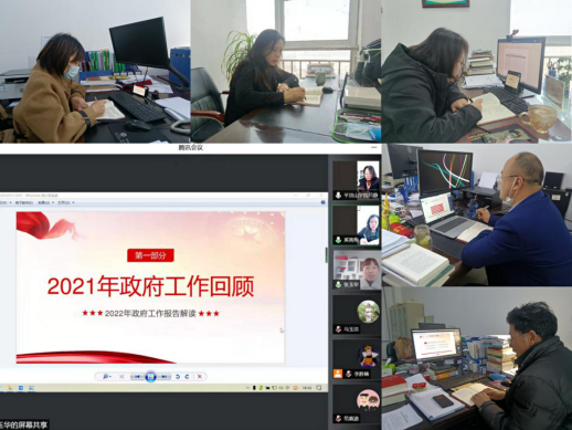 其次,由张玉华老师对两会精神做专题学习。她从2021年政府工作回顾、2022年主要预期目标、2022年政府工作任务三个方面做具体阐述。肯定过去一年是党和国家历史上具有里程碑意义的一年,庆祝中国共产党成立一百周年、召开党的十九届六中全会、打赢脱贫攻坚战等重大事项顺利完成,全年整体主要目标任务较好完成,“十四五”实现良好开局,我国发展又取得新的重大成就,人民生活水平稳步提高,疫情防控成果持续巩固。在2022年主要预期目标上,我国发展面临的风险挑战明显增多,必须爬坡过坎,越是困难越要坚定信心、越要真抓实干,更要把稳增长放在更加突出的位置。在2022年政府工作任务中,张老师说到,2022年经济社会发展任务重、挑战多,更要按照习近平同志为核心的党中央部署要求,完整、准确、全面贯彻新发展理念,加快构建新发展格局,推动高质量发展,扎实做好各项工作。
