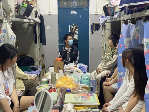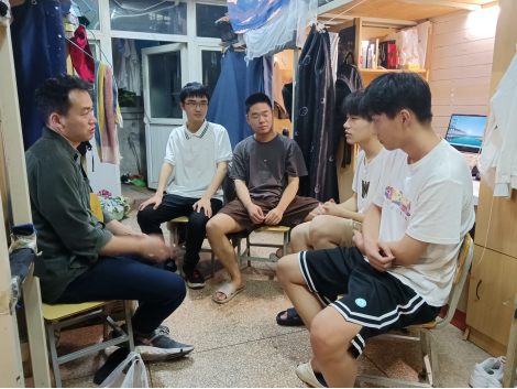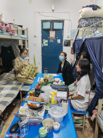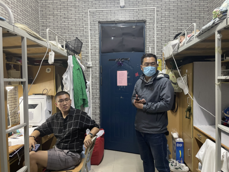 在员工宿舍,各位老师详细了解了同学们在封校管理期间的思想、学习和生活动态,认真询问了他们的实际困难和需求,并针对如何合理有效地安排学习生活、调节身心状态等内容给予建议与指导。老师们嘱咐大家要严格遵守公司的疫情防控政策规定,认真配戴口罩,不信谣、不传谣,在做好个人防护的同时,保证线上教学的学习质量。要合理安排作息时间,劳逸结合,加强体育锻炼,鼓励大家保持乐观积极的心态,营造健康和谐的宿舍文化氛围,平稳顺利地度过封校管理时期。同学们纷纷表示老师的亲切关怀让他们倍感温暖,会认真遵守公司疫情防控规定,做好个人管理,以积极阳光的心态和健康的体魄投入到学习生活中。