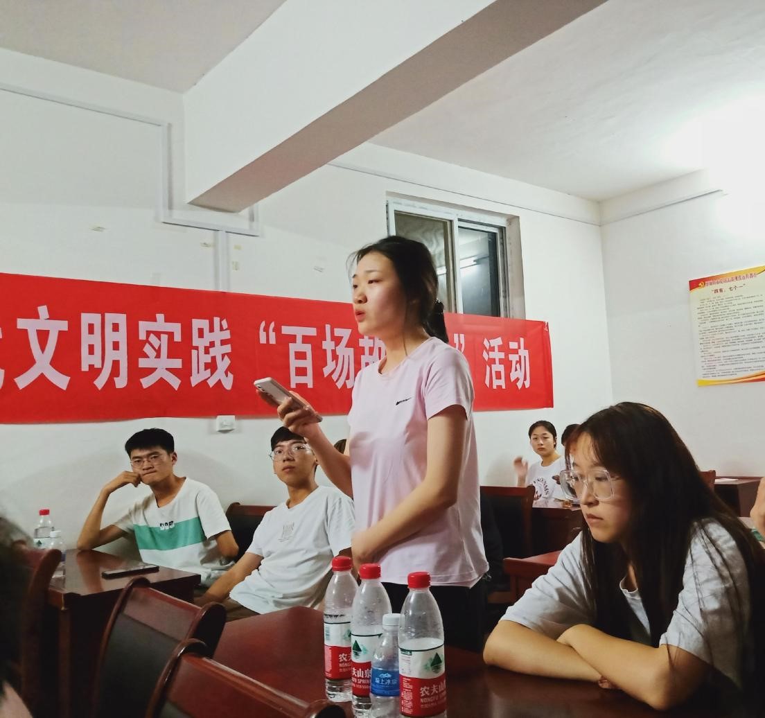 会议开始,郝老师对今日工作进行总结,他从工作细节出发,通过对一天的准备工作的观察,向大家指明工作中出现的问题。首先是做饭问题,指明后勤保障的不足之处,紧盯“谁做饭、谁负责”的原则,切实将“吃”的问题落到实处。其次是安全用电问题,他特别叮嘱严禁在住宿的地方出现“飞线”现象,针对充电问题,住宿负责人需严把关,安全问题上不可有任何懈怠。在住宿环境上,郝晓蒙老师提议通过制定考评制度,对环境卫生严加要求,并将考评纳入先进个人的考评体系中。再次,郝老师制定作息时间,结合各小组实践内容,科学、合理地安排实践行程,确保大家有充分时间适应“三下乡”实地环境,为后续工作打实基础。