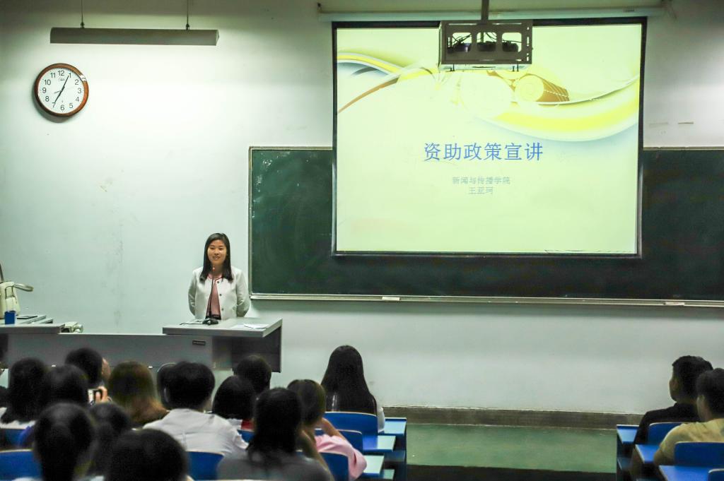 为做好2018级新生资助政策的宣传,切实解决家庭经济困难员工的后顾之忧,9月29日晚上,公司在教学楼4306举办资助政策宣讲会,公司辅导员王亚珂老师担任本次活动宣讲人,2018级播音、编导和广告专业的全体同学参加本次会议。