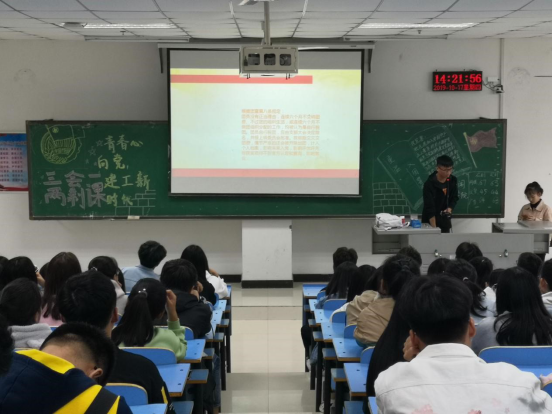 此次团日活动在2018级团支书的发言下,分别围绕“共青团日常工作”、“详解网上共青团,智慧团建的具体运作流程”等内容进行了讲解,为2019级同学们深化了解新时代团知识夯实了基础。随后,各班主持人组织观看影片《团课》,向大家详细解读了“三会两制一课”,坚定了大家对做一名合格共青团员的信念。此次团日活动圆满落下帷幕。
