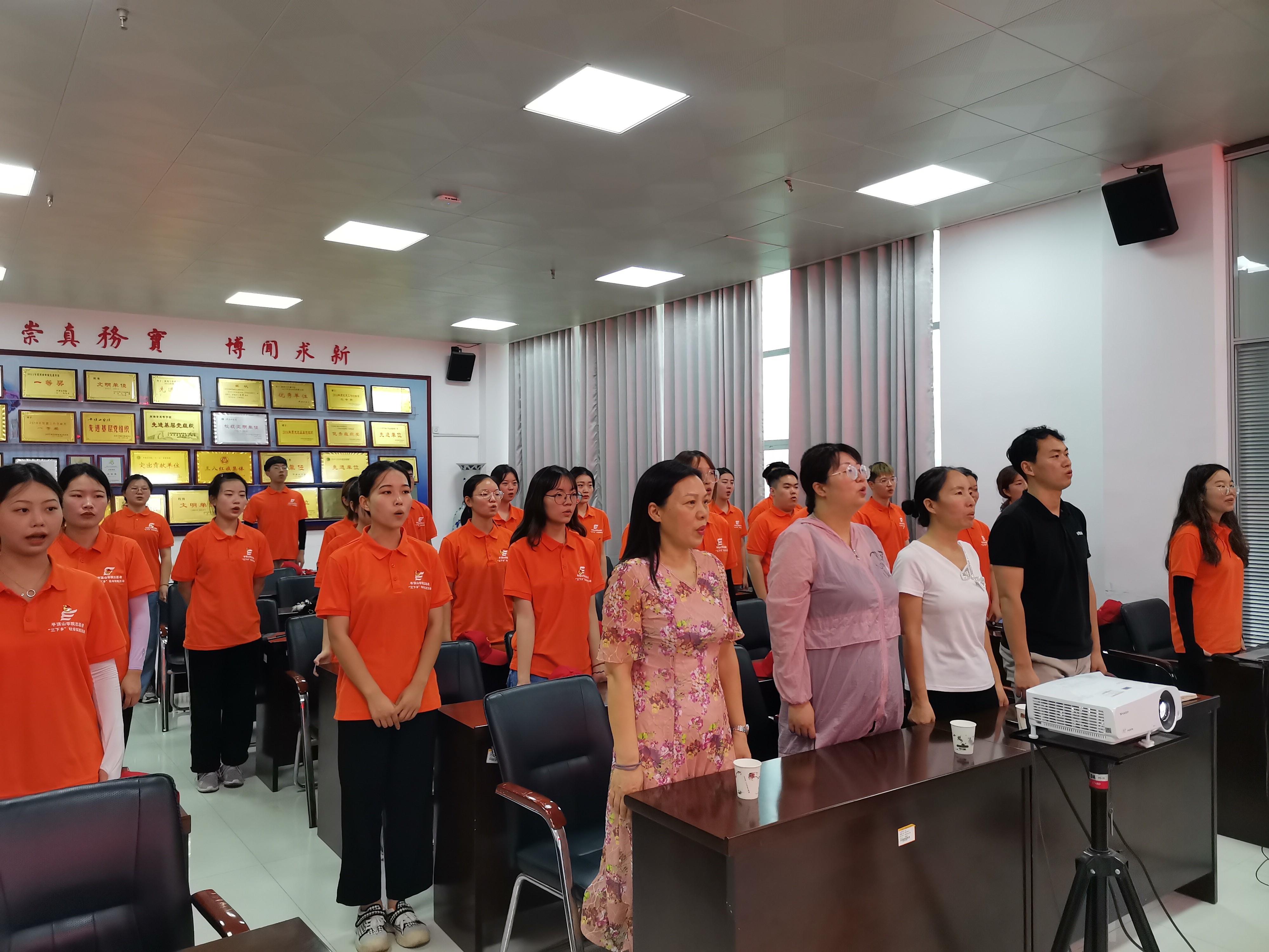 活动伊始,全体人员起立奏唱国歌,会议在国歌中拉开帷幕。随后,由奚青梅书记代表公司全体师生向参加社会实践的志愿者表示亲切的问候与祝愿,她要求到:一是注意安全。安全是一切的前提和基础,包括饮食、用电、交通等方方面面,安安全全去,平平安安回。二是讲文明,文明产生和谐。走出校园,每位员工的一言一行代表的是公司的形象,也是新时代老员工素养的体现。三是团结协作,做出成绩。新闻宣传组、微视频组、调研组、爱心帮扶组四个小组间要在各个环节上尽心尽力、相互配合,不但要圆满完成任务,而且要注重公司专业特色、办学理念,将所见、所学与实践相结合,充分发挥新媒体的引领作用。