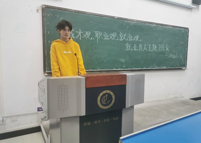 在各班班长和团支书的主持下,主题班会活动有序举办成功。活动期间,同学们更加明确了,个人理想与国家发展息息相关,青年一代人的理想的是否远大关系着国家是否能够长远发展,作为新时代青年应当树立正确的价值观和就业观。除此之外同学们更加了解和熟悉了个人目标职业的工作内容、待遇、未来发展趋势以及对社会的影响力。