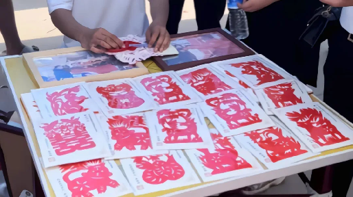 (传承人张海鹏现场演示剪纸)