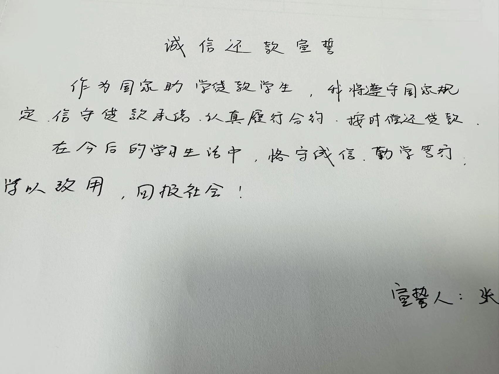 活动分为两个部分。首先金老师向毕业生们讲解了征信知识和还款知识,带领大家学习了《支付宝还款操作指南》,又用几个小案例向同学们说明了贷款违约的后果,如:贷款会限制报考公务员、事业单位;影响贷款购房,买车等高消费活动。随后,金老师向同学们强调了诚信的重要性。“人无信而不立”诚信是中国人最重要的品质,金老师要求大家在本子上写下诚信还款誓言,鼓励大家用实际行动来践行合格老员工的责任与担当,争做讲诚信、讲文明、讲道德的大学毕业生。