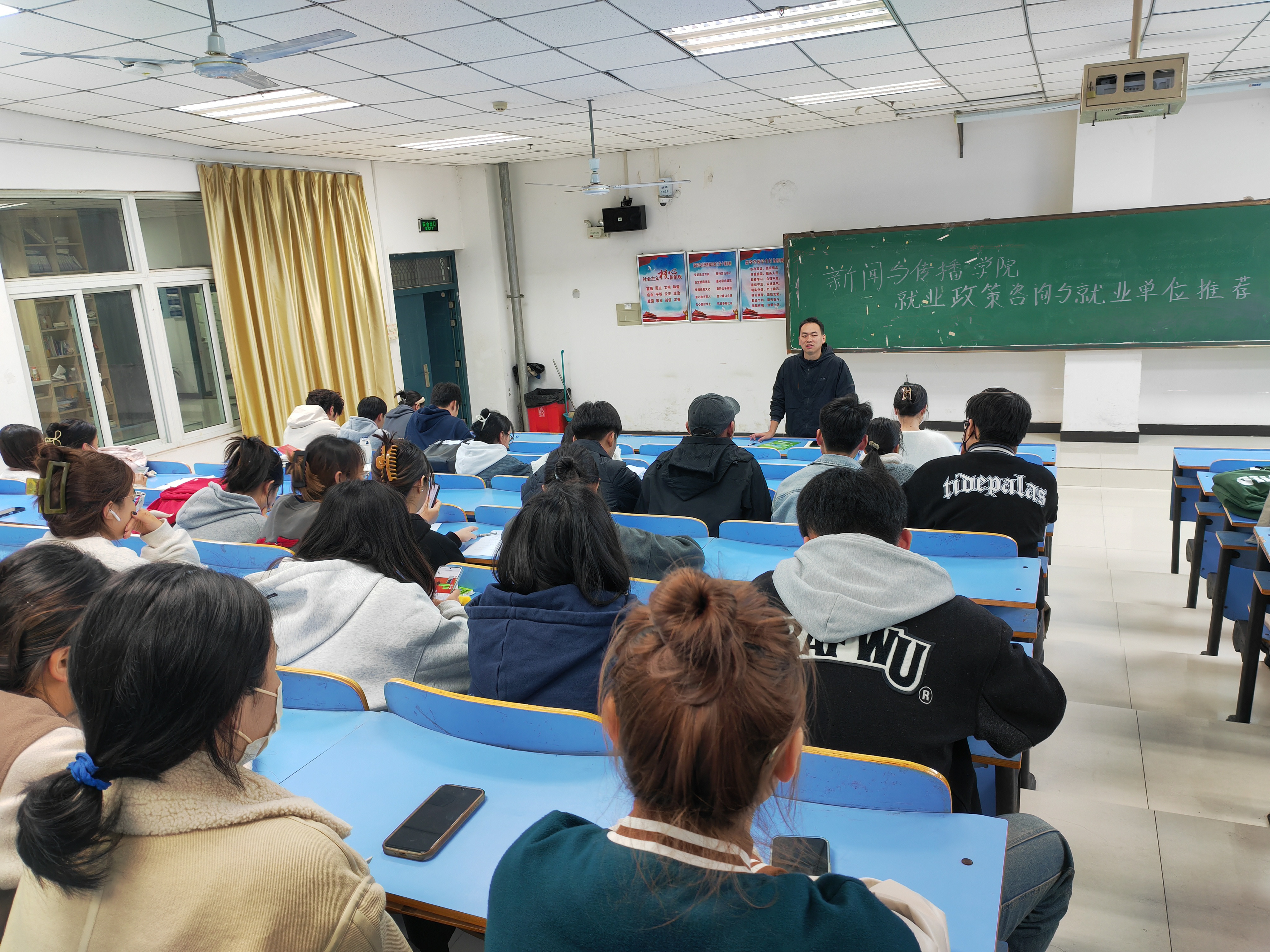 会上,梁书记从就业现状、就业方向和就业能力三个方面展开介绍。首先他通过数据分析、案例介绍等内容向同学们指明了目前的就业现状,希望毕业生能正视现实,积极做好职业规划。并推荐高途,牧原,链家等就业单位。