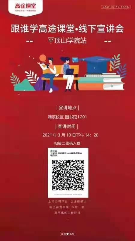 时间:3月10日下午2点20地点:湖滨校区图书馆L201要求: 不限专业和教资offer可保留到毕业后考研上岸可无条件解约岗位:小学/初中/高中语数英物化生全科老师(超全岗位!一定有你擅长的那一科)薪资:无责底薪5000 ,7k~20k/月,六险一金,旅游基金,福利多多!公司地址:郑州经开区高途大厦(高德地图搜跟谁学高途课堂郑州中心)申请报名通道-(可直接申请):https://jinshuju.net/f/GTcBnU[hr选择:赵菲
