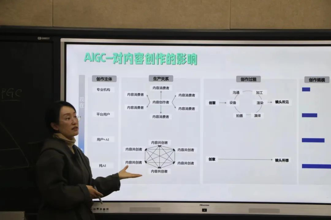 由网媒、广告、文管、文学素质等教研室组成的教学研讨会于L207同时举行。李曌妍博士通过儒家与儒学的关联为角度,深刻的讲解了儒学文化;万鹏老师通过新颖的授课方式,让员工熟悉并掌握对于人工智能工具的分类以及应用。娄艳阁副经理在研讨过程中强调,教师在授课过程中要在保持共性的过程中,呈现各性,对于课程的内容要加强把握。路学军教授对于教师们在授课过程中的表现给予了肯定,同时也希望教师们能在授课过程中展现教学特点,挖掘教师们自身的教学优势。